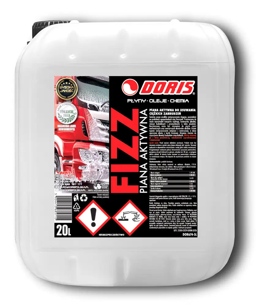 Piana aktywna FIZZ doskonale nadaje się do mycia kół, podwozi, maszyn i dużych powierzchni, takich jak wagony kolejowe. Stosunek rozcieńczenia wynosi 1:6 do kół i maszyn oraz 1:5 do wagonów. Idealna do mycia wstępnego (1:70), a przy myciu zasadniczym zaleca się stosunek 1:40.
